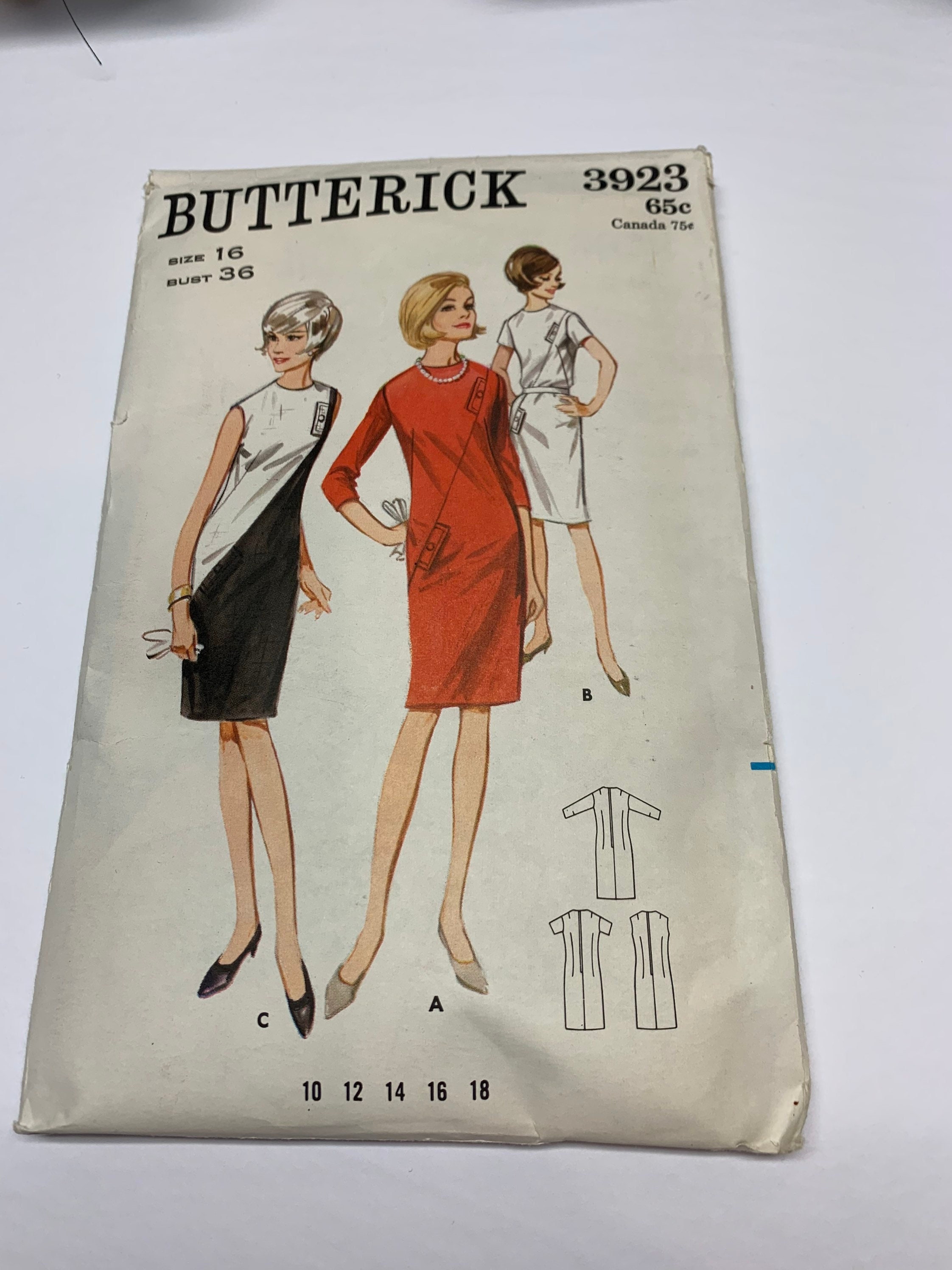 Butterick 3923 1965 One Piece Dress Sewing Pattern Size 16 Etsy Australia